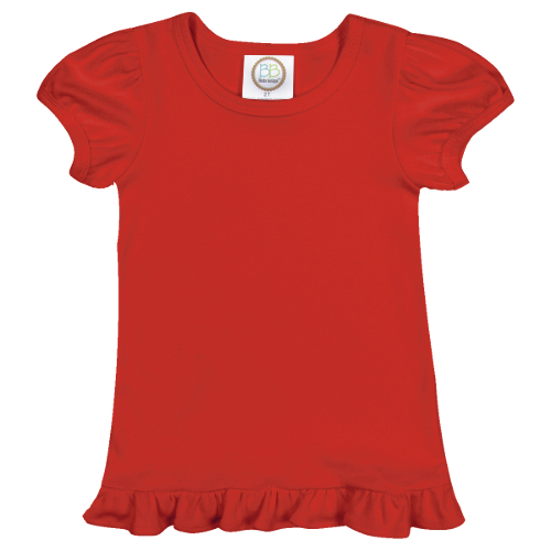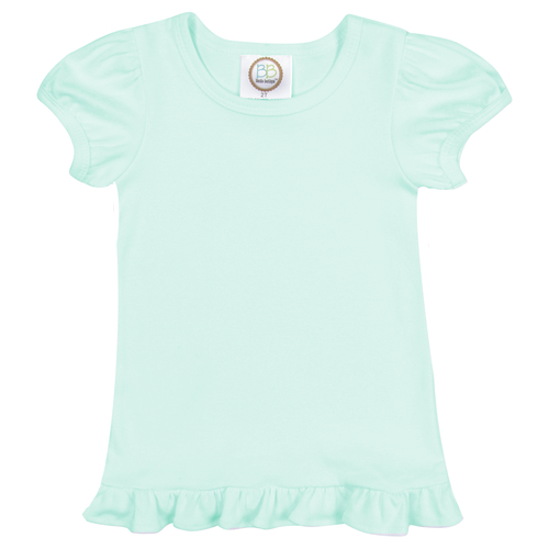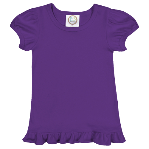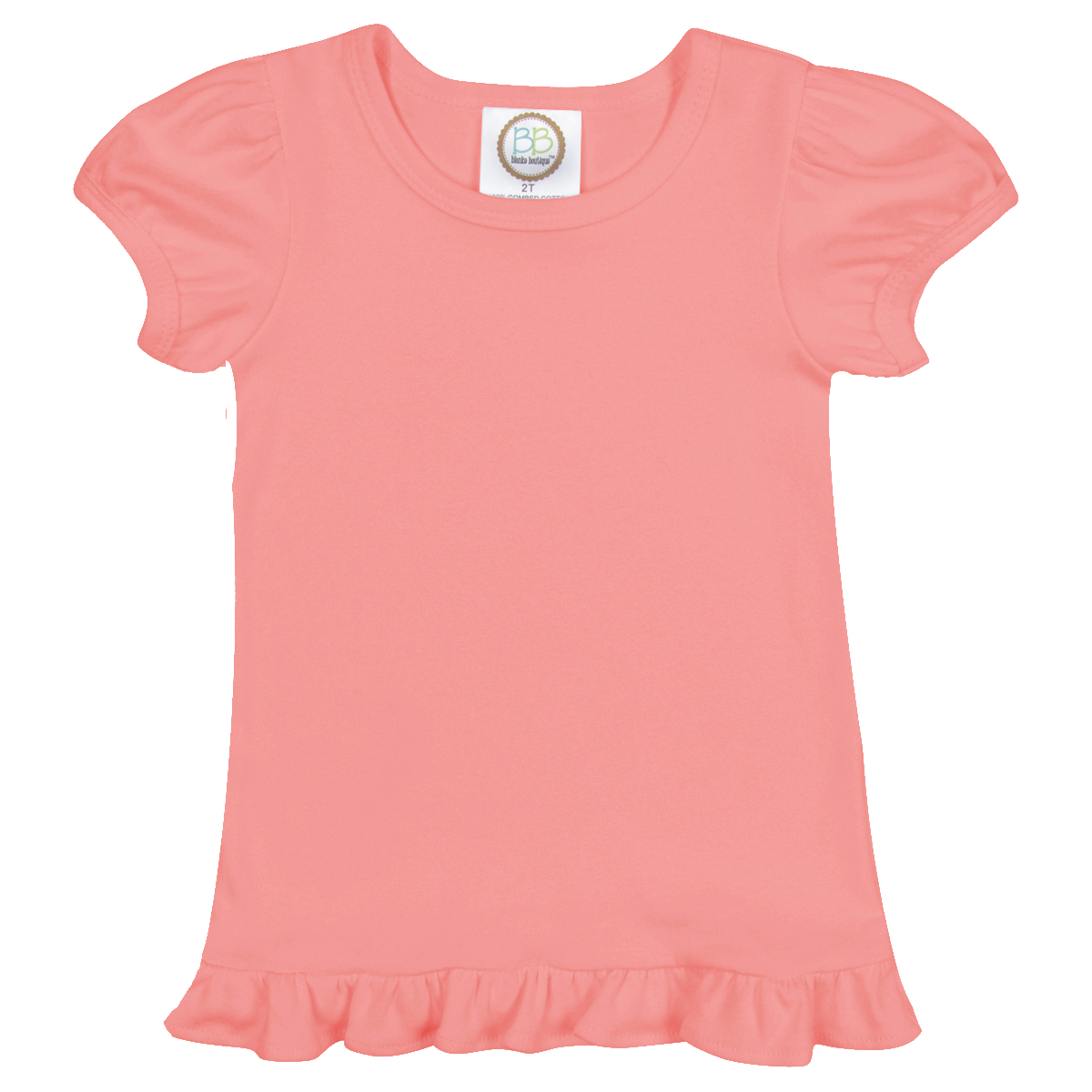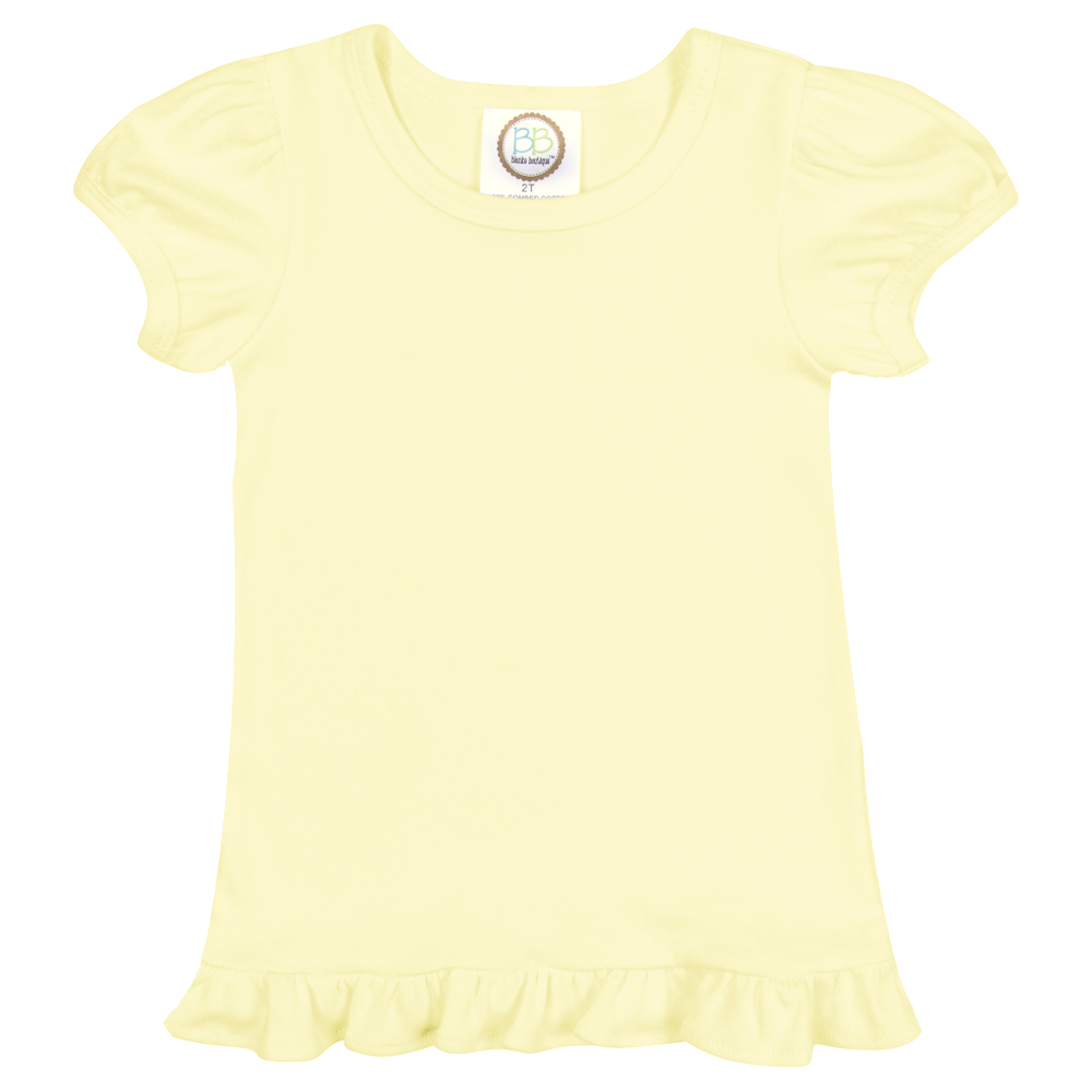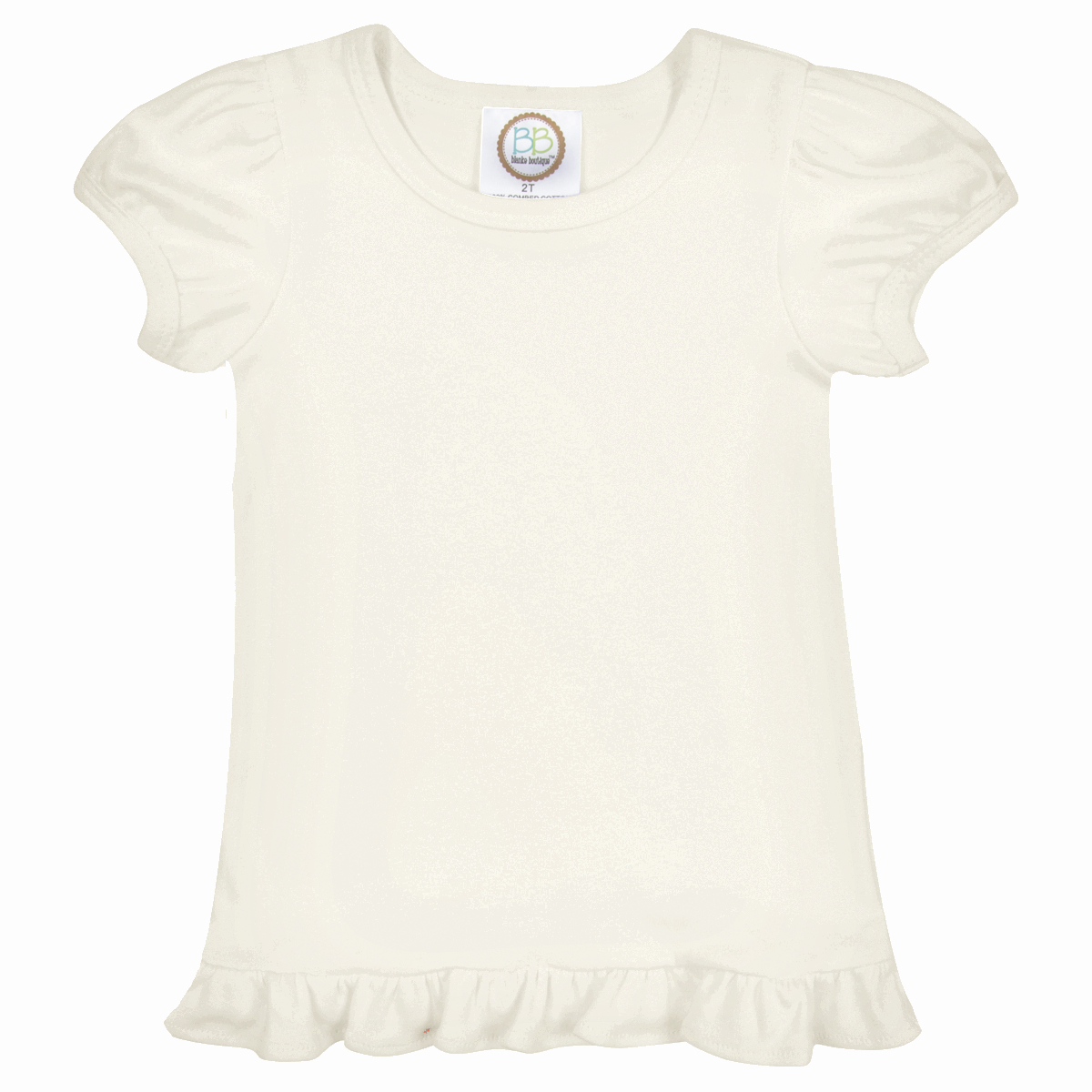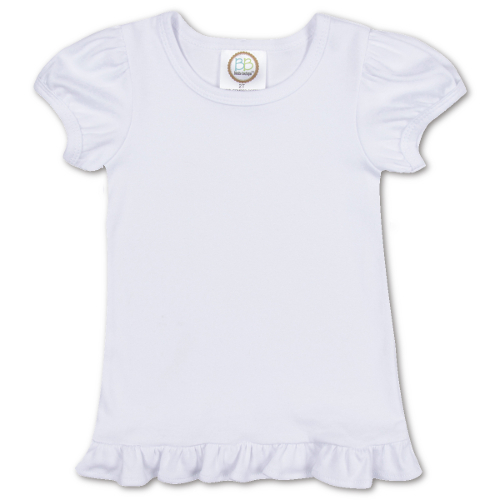Our First Tee ever! This premium cotton knit girl's short sleeve ruffle embroidery tee is a customer favorite. Our best selling design with classic lines and detailed fit makes the perfect blank canvas for your next applique, embroidery, monogram or heat press project. With its flirty ruffle bottom and puffy cap sleeves, this adorable tee will be sure to add that feminine touch.