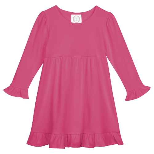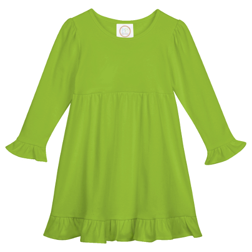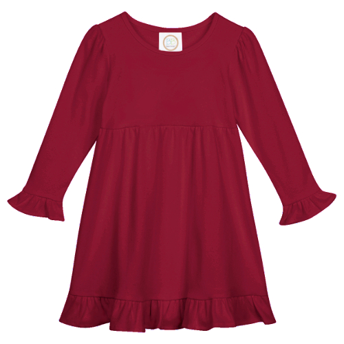Our Long Sleeved Ruffle Dress is available in several colors to meet your Fall and Winter needs!