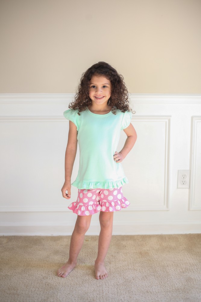 Our polka dot ruffle shorts pair perfectly with our embroidery blanks to make a full, ready made outfit!